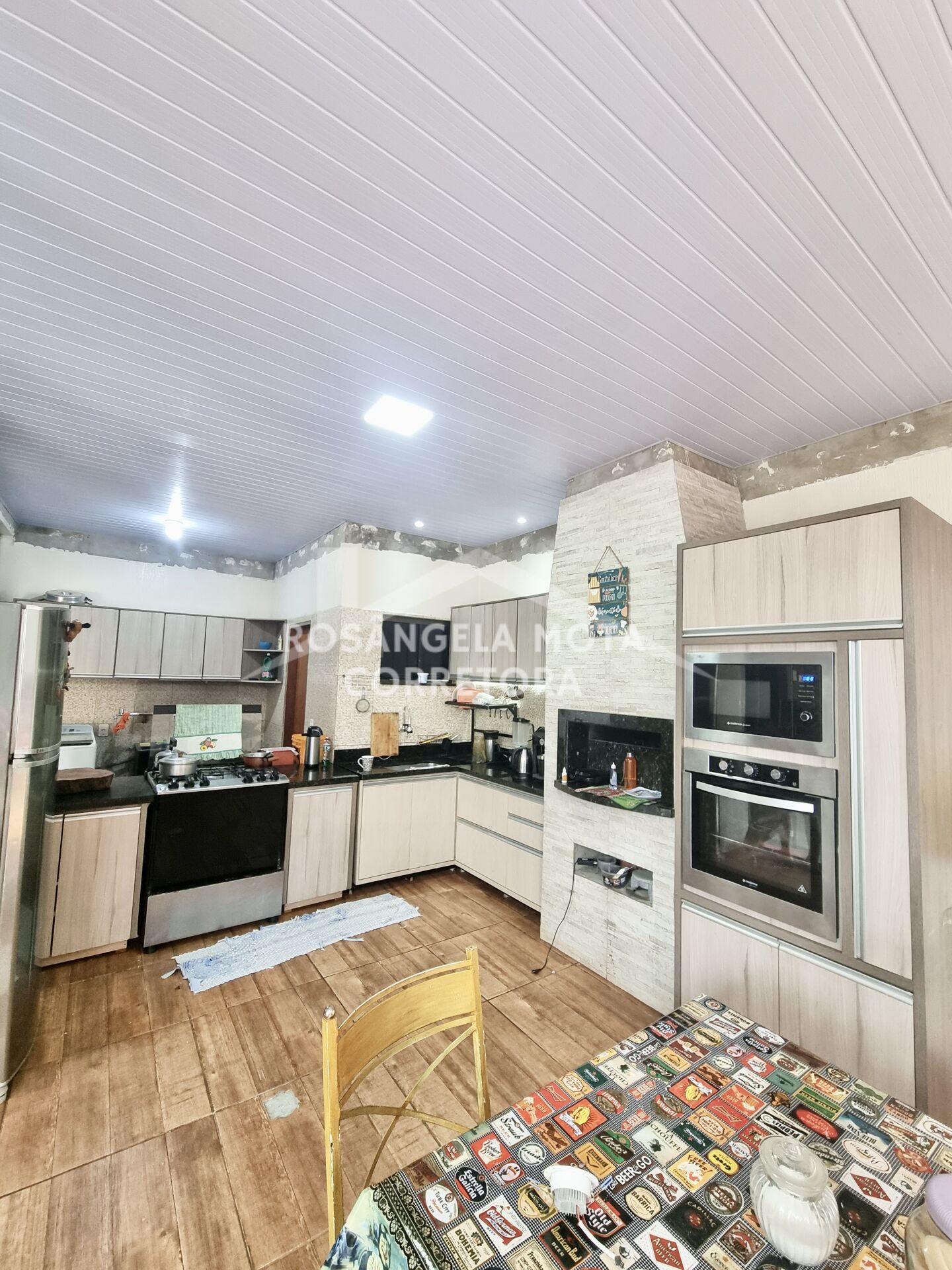 🍴 Cozinha Gourmet Ampla com móveis planejados, churrasqueira, forno e microondas embutidos.
